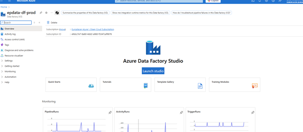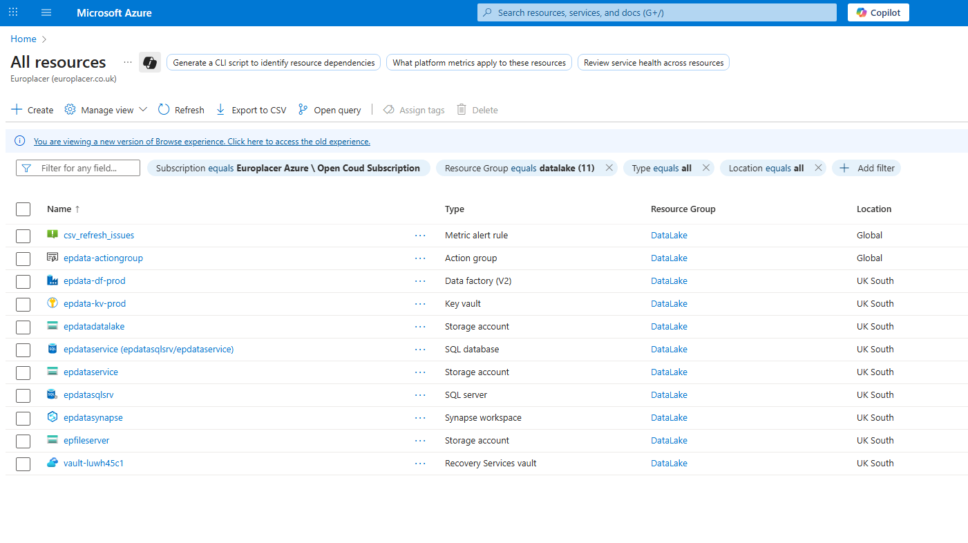 - Filter the results by subscription:Europlacer Azure and resouce group:datalake
